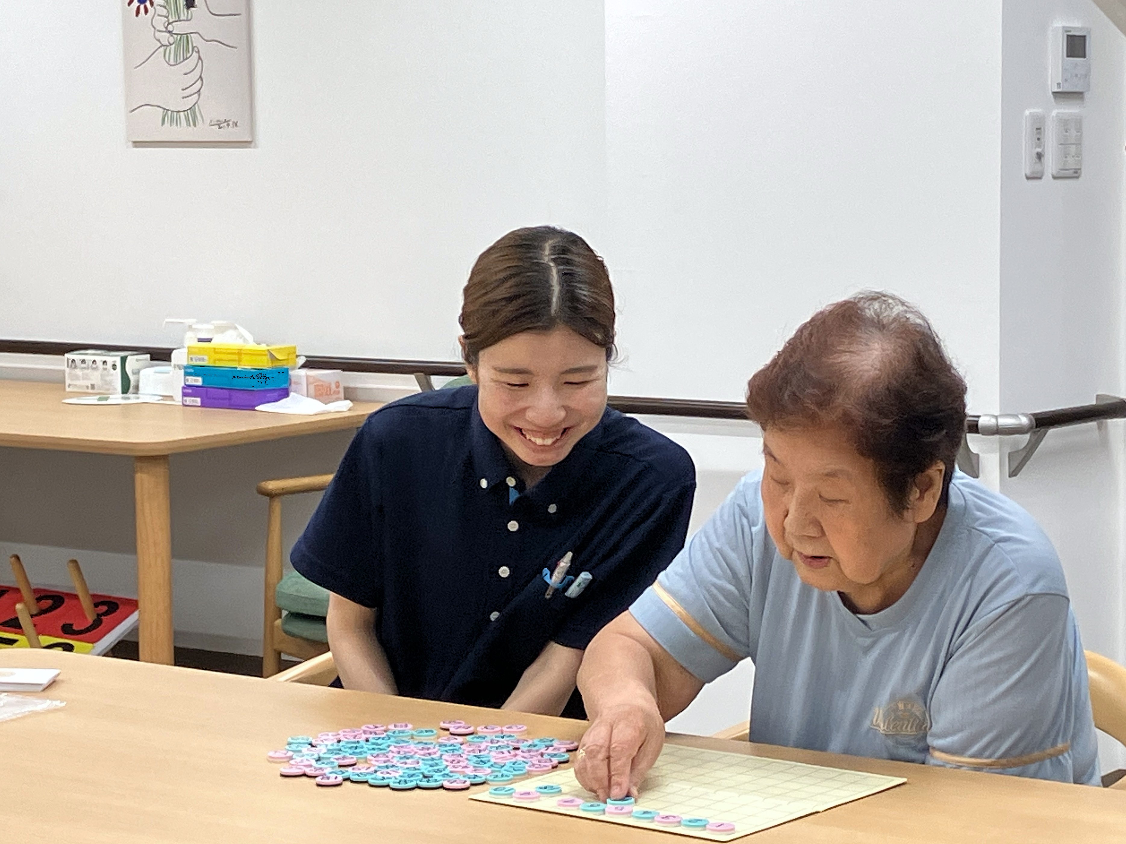 施設では毎日、体操や脳トレ、制作やゲームなどのアクティビティを開催。 楽しみながら心も体も元気になれる時間を、スタッフと一緒に積み重ねています。 さらに、季節ごとの行事や月替わりのイベントも充実。思い出をともに作る時間を大切にしています。 そして何より、入居者様の「やってみたい」という想いにスタッフ全員で耳を傾け、実現に向けて力を合わせてきました。 職員一人ひとりが、“心が動く瞬間”を見逃さず、笑顔になれるきっかけを日々探しています。 ここは、「思いがカタチになる場所」です