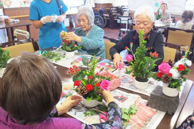 毎日に彩りと楽しみを 当施設では、ご入居者様のご趣味やご関心に寄り添ったクラブ活動やレクリエーションを多数ご用意しています。フラワーアレンジメント・書道・音楽・手芸・体操・クラフトなど、幅広いプログラムの中から、お好きな活動をお選びいただけます。 「久しぶりに筆を持った」「新しい趣味ができた」といったお声も多く、入居後に新たな楽しみを見つける方がたくさんいらっしゃいます。お一人でも、皆さまとご一緒でも、自分らしくいきいきと過ごしていただける環境が整っています。