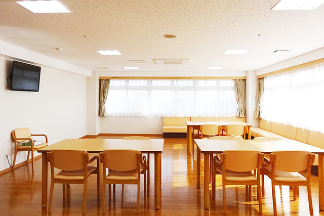 | 共用設備 | ●健康管理室 ●応接室 ●事務局 ●駐車場 ●エレベーター ●洗濯室 ●介護浴室 ●特殊浴室 ●ダイニング ●スタッフコーナー ●厨 房 ●理美容・歯科検診室 |