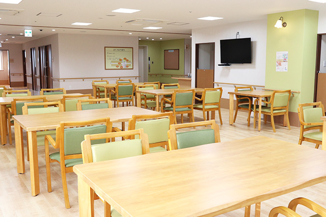 当施設では、ご夫婦でのご入居実績もあり、これまでと変わらない時間を安心してお過ごしいただける環境が整っています。全室個室のプライベートルームは、愛着のある家具をお持ち込みいただけるゆとりある空間。介護用電動ベッド(寝具付き)をはじめ、ナースコール、シャワー付きトイレ、車いす対応洗面台、エアコン、スプリンクラー、クローゼット、照明、レース・ドレープ付きカーテンなど、暮らしに必要な設備を標準で備えており、ご入居当日から快適な生活を始めていただけます。 共用のリビング・ダイニングは、食事の場としてはもちろん、機能訓練やレクリエーションの場としても活用され、自然と笑顔や会話が生まれるあたたかな空間です。ご入居者様同士の交流やスタッフとのふれあいを通して、毎日をいきいきとお過ごしいただけます。