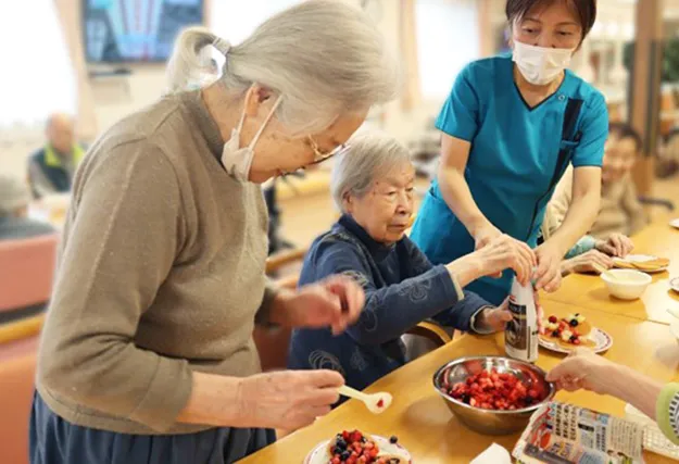 毎日の暮らしに、楽しみを。 当施設では、四季折々の行事や季節に合わせたイベント、頭や体を動かすゲームや体操、創作活動、料理レクなど、バラエティ豊かなレクリエーションを企画しています。 ご入居者様一人ひとりが無理なく参加でき、自然と笑顔がこぼれるような時間を大切にしています。 人とふれあいながら楽しいひとときを過ごすことで、心も体もいきいきと。 毎日の生活に彩りを添える、そんなレクリエーションをご用意しています。
