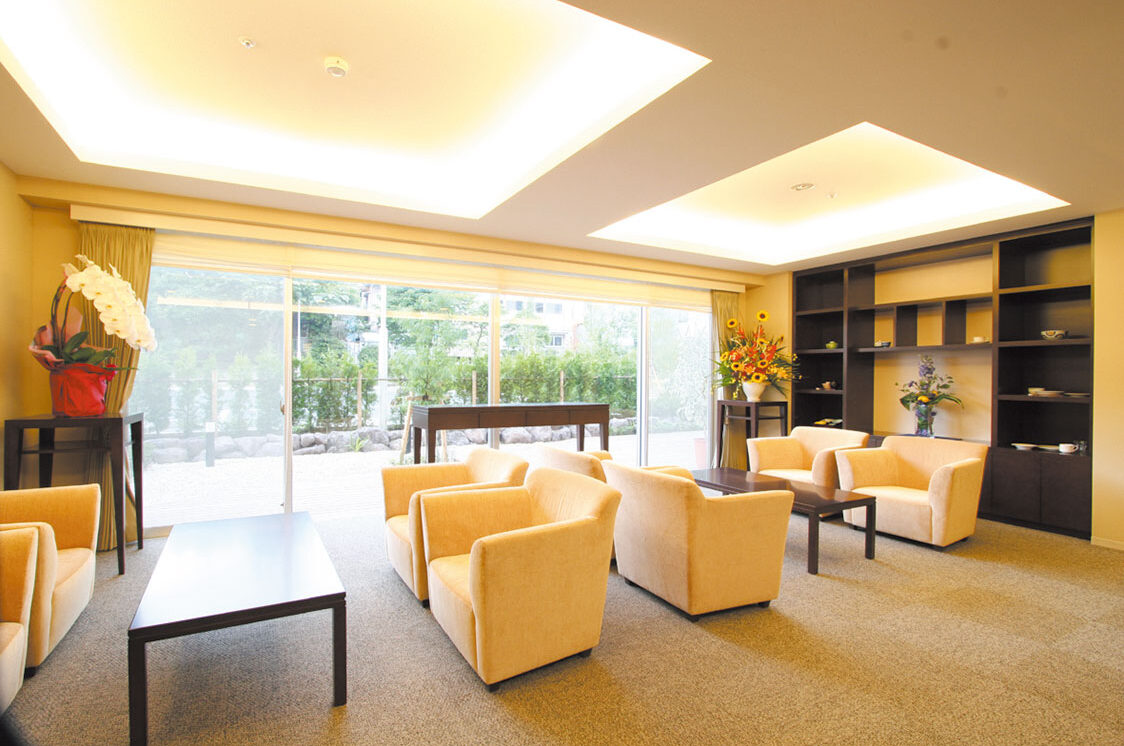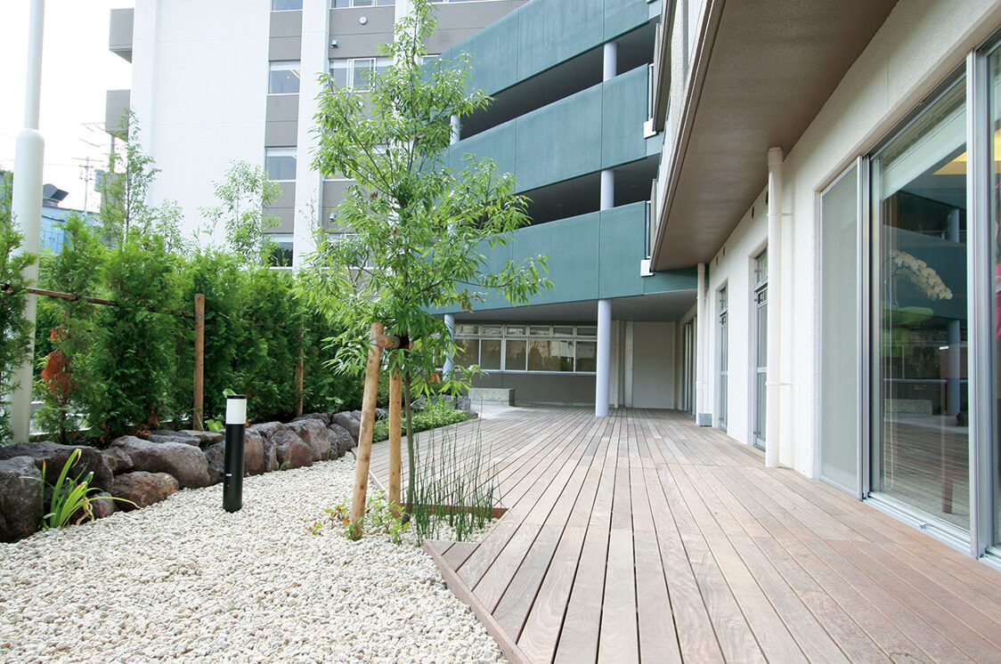 - 季節を感じる中庭・全室南向きの居室 ホーム内の中庭は、遊歩道になっており天気の良い日にはお散歩をしながら季節を感じることができます。 また、居室は全室南向き。採光がよくご入居者に大変好評をいただいております。
