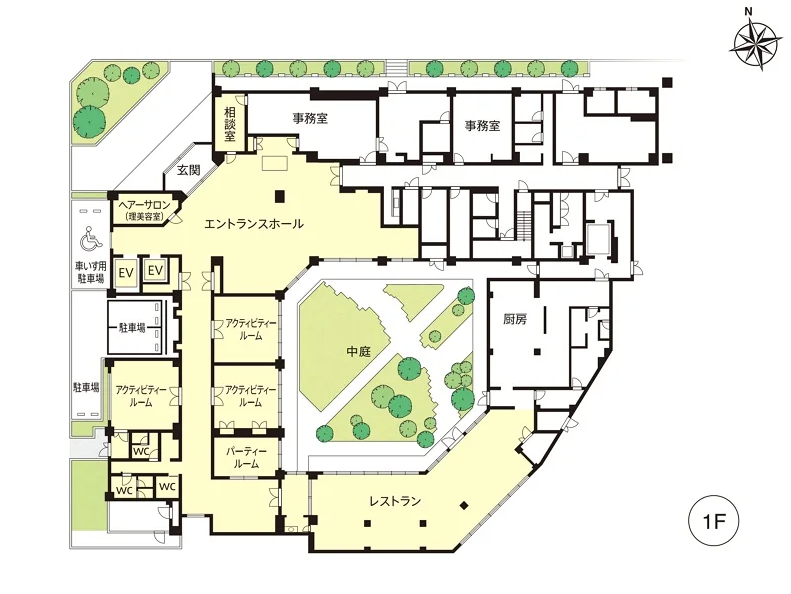 穏やかな周辺環境に囲まれた、開放感のある明るい空間が特徴です。施設内には、広々とした居室やリビングスペースがあり、心地よい生活をおくることができます。