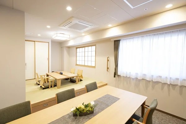 | 共用設備 | エントランスホール、リビング&ダイニング(食堂)、機能訓練室、個人浴室、個人浴室(リフト付き)、特別浴室、シャワーブース、ヘルパーステーション、健康管理室、ファミリールーム、ラウンジ、リビング 、ヘアーサロン(理美容室)、応接室、ランドリー、テラス、駐車場 |