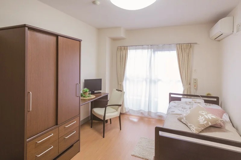 | 居室設備 | 介護用電動ベッド(寝具付)、ナースコール、車いす対応洗面台、暖房便座機能付トイレ、クローゼット、カウンターデスク、カーテン(レース・ドレープ)、エアコン |