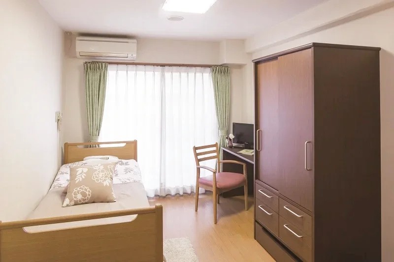 | 居室設備 | 介護用電動ベッド(寝具付)、ナースコール、車いす対応洗面台、暖房便座機能付トイレ、クローゼット、カウンターデスク、カーテン(レース・ドレープ)、エアコン |