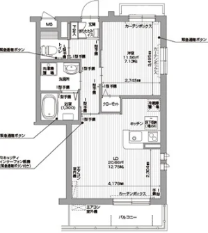 | 居室設備 | インターホン、緊急通報ボタン、防犯センサー、IHキッチン、洗面所、トイレ、浴室、クローゼット、バルコニー、下足箱、エアコン、照明器具 |