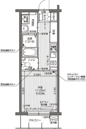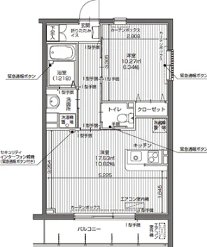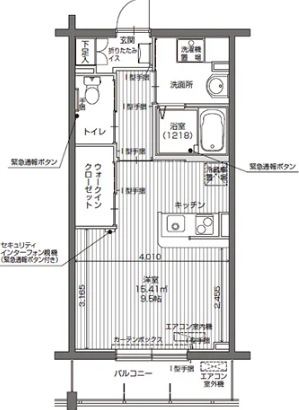 | 居室設備 | インターホン、緊急通報ボタン、防犯センサー、IHキッチン、洗面所、トイレ、浴室、クローゼット、バルコニー、下足箱、エアコン、照明器具 |