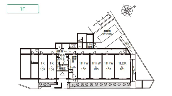 | 共用設備 | エントランスホール、リビング&ダイニング(食堂)、ラウンジ、フロント事務室、駐車場、駐輪場 |