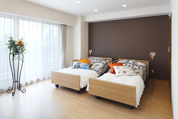 | 居室設備 | 介護用電動ベッド(寝具付)、ナースコール、車いす対応洗面台、温水洗浄機能付トイレ、チェスト、クローゼット、デスク、メモリーボックス、カーテン(レース・ドレープ)、エアコン |