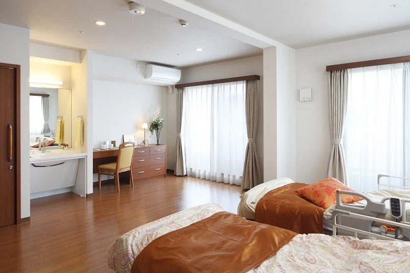 | 居室設備 | 介護用電動ベッド(寝具付)、ナースコール、車いす対応洗面台、温水洗浄機能付トイレ、チェスト、クローゼット、デスク、メモリーボックス、カーテン(レース・ドレープ)、エアコン |