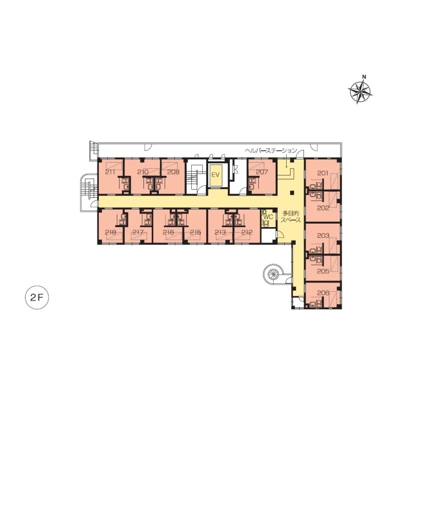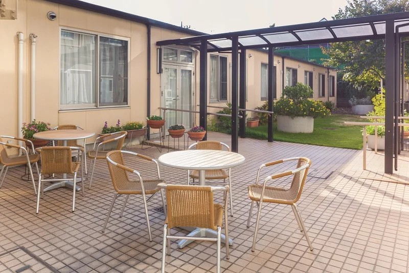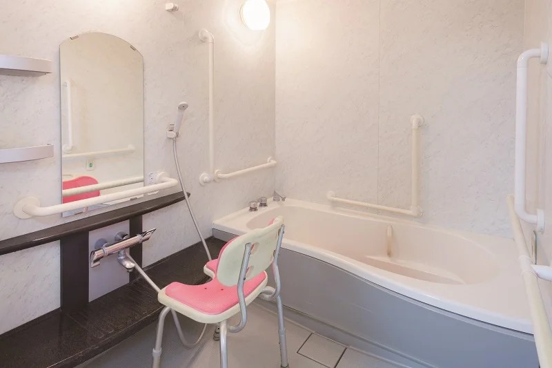 共用設備 | エントランスホール、リビング&ダイニング(食堂)※、多目的ルーム、ヘルパーステーション、健康管理室、特別浴室、個人浴室、テラスガーデン、化粧室、駐車場 ※食事だけでなくイベント・レクリエーション・機能訓練等、日常生活上多目的に使用。 |