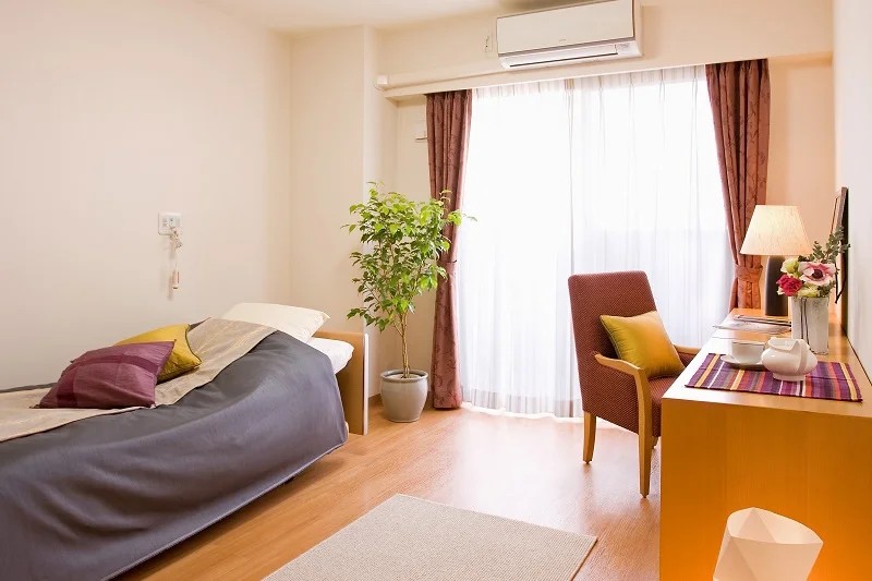 | 居室設備 | 介護用電動ベッド(寝具付)、ナースコール、車いす対応洗面台、温水洗浄機能付トイレ、チェスト、クローゼット、デスク、メモリーボックス、カーテン(レース・ドレープ)、エアコン |