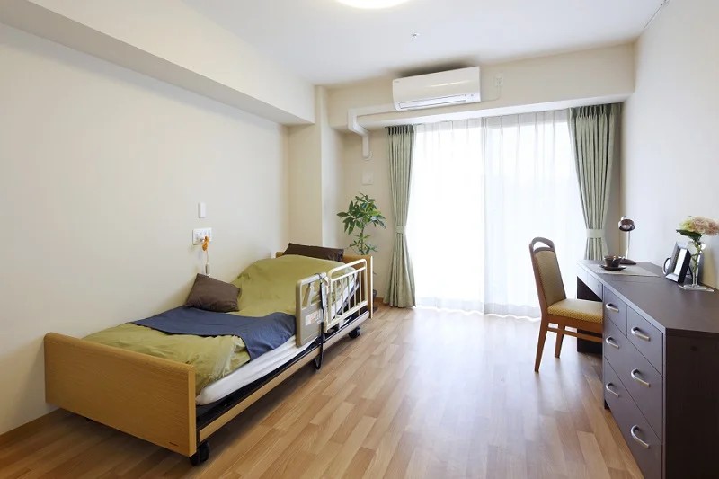 | 居室設備 | 介護用電動ベッド(寝具付)、ナースコール、車いす対応洗面台、温水洗浄機能付トイレ、チェスト、クローゼット、デスク、メモリーボックス、カーテン(レース・ドレープ)、エアコン |