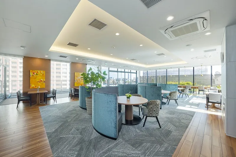 | 共用設備 | テラス、ロビー、フロント、ラウンジ、レストラン、ウッドデッキ、エレベーター、ナースコール、スタッフルーム、メールボックス、トレーニングルーム、プライベートダイニング、健康管理・相談室、共用トイレ、厨房室、各室インターホン設備(ナースコールとは別)、各階ダストシュート室、多目的室、宅配ボックス、リハビリ室、寝台用エレベーター、屋上施設、応接室、放送設備、洗面室、玄関ホール、理美容室、異常監視システム、自販機、花壇、談話室、ペット足洗い場、車椅子用トイレ、避難設備、防災設備、風除室、ダイニングルーム(食堂)、 |