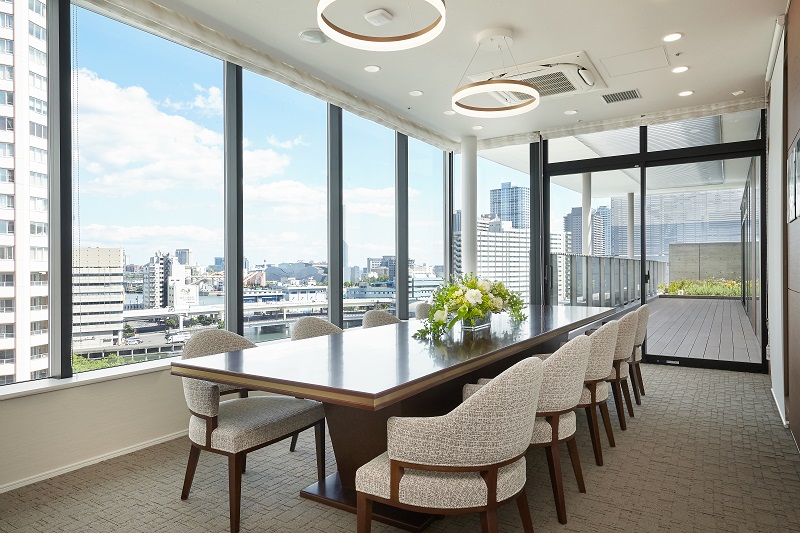 ご入居者とゲストがゆったりとお過ごしいただけるスペースです。運河に面した落ち着いた雰囲気のラウンジには、コーヒーマシンを設置しており、セルフサービスにてお召し上がりいただけるフリードリンクサービスを実施しております。奥にはライブラリーがあり、読書やお仕事にも快適です。 ※サービス利用時間:7:00~20:00
