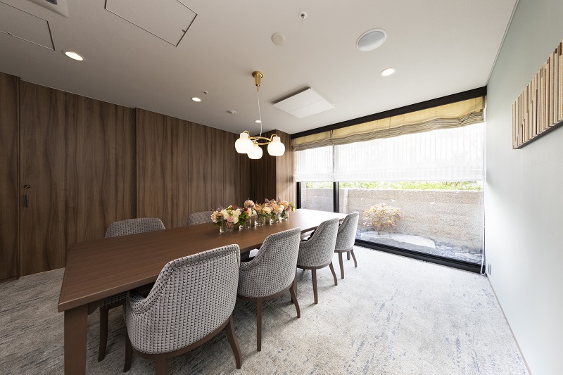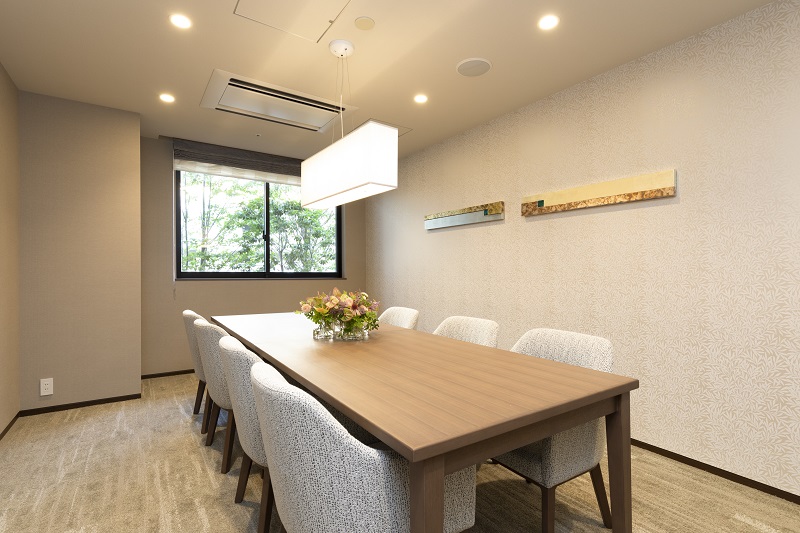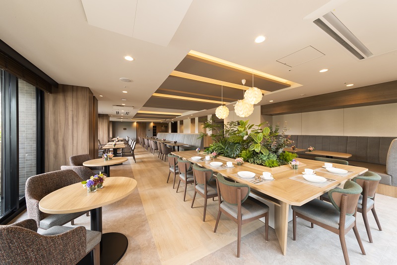 - ダイニングでのお食事で 愉しいひとときを提供いたします。 ------------------------------------------------ ダイニングではお食事を365日・予約なしでご利用いただけます。 季節を感じる変化に富んだ料理をシェフが真心を込めて調理いたします。 プライベートダイニングを併設しており、ご家族・ご友人を招いてお食事することもできます。お身体の状況に応じて、刻み食等もご用意いたします。お部屋にいながらお食事を愉しめる配膳サービスも行っております。 ※食事、イベント食、特別食、プライベートダイニング、配膳のご利用には別途費用がかかります。