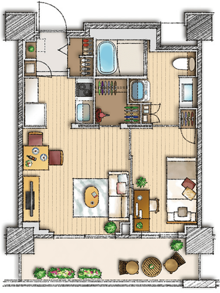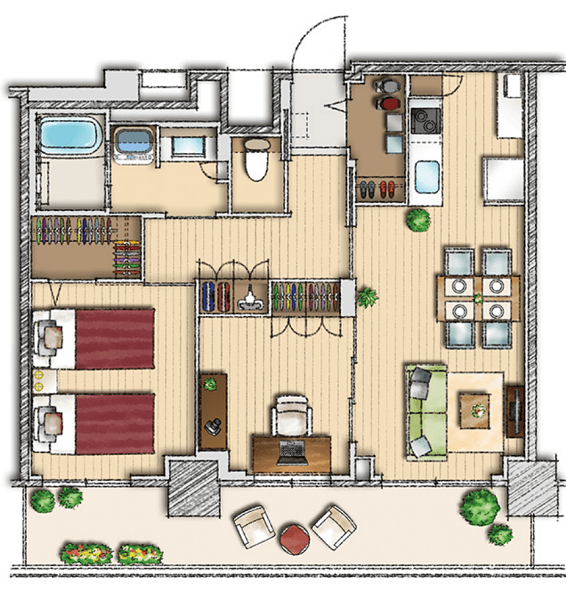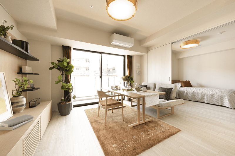 | 居室設備 | トイレ、エアコン、キッチン、シャワー、カードキー、クローゼット、ナースコール、フットライト、フローリング、フラットフロア、人感センサー、化粧洗面台、収納スペース、収納棚、床暖房、引き戸式ドア(居室内)、折りたたみ椅子、インターネット接続口、浴室、浴室暖房乾燥機、温水洗浄機能付きトイレ、物干しベランダ、玄関インターホン、避難設備、鏡、防災設備、電磁調理器、靴箱 |