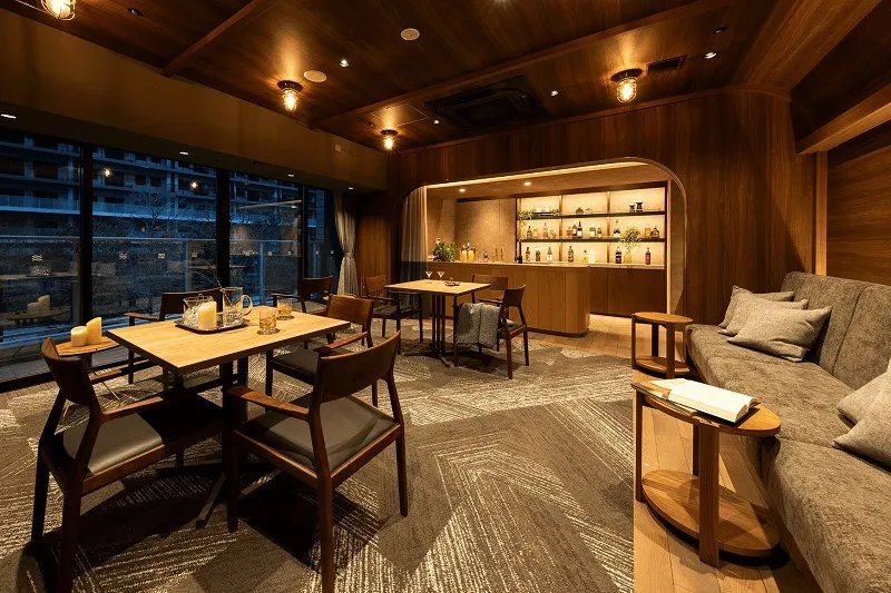 落ち着いたカラーのインテリアが大人の雰囲気を醸し出す空間。一人の時間はもちろん、ご入居者やご友人との語らいにも最適です。 ※行事等でご利用される際は予約が必要です。 ※利用時間:7:30~20:00