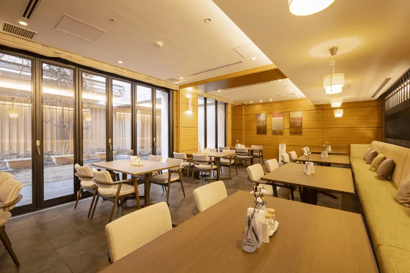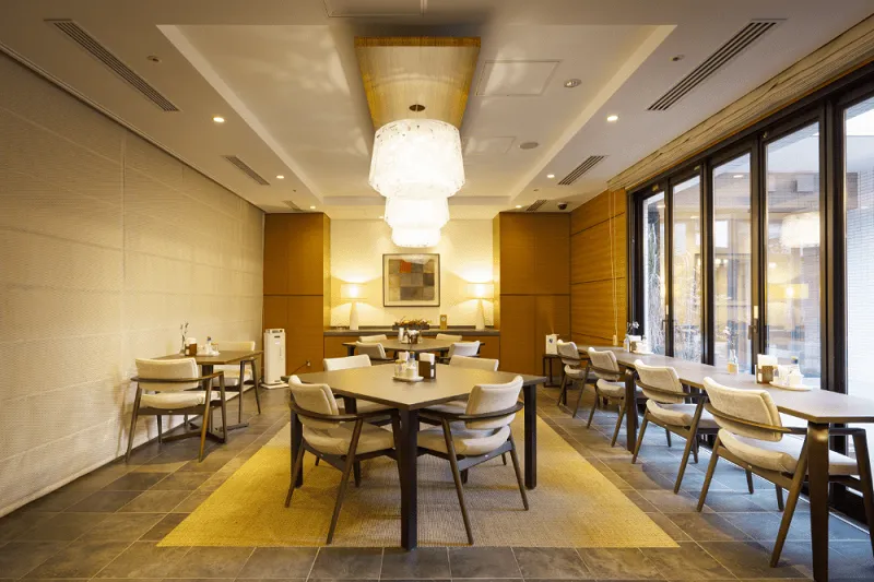 - ダイニングでのお食事で 愉しいひとときを提供いたします ------------------------------------------------ ダイニングではお食事を365日・予約なしでご利用いただけます。 季節を感じる変化に富んだ料理をシェフが真心を込めて調理いたします。 プライベートダイニングを併設しており、ご家族・ご友人を招いてお食事することもできます。 お身体の状況に応じて刻み食等もご用意いたします。 ※食事、イベント食、特別食、プライベートダイニングのご利用には別途費用がかかります。