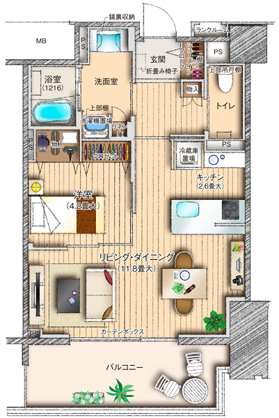 | 居室設備 | 緊急呼び出しボタン、壁収納ベンチ、生活安全センサー、IHクッキングヒーター、手すり、浴室照明安否確認システム |