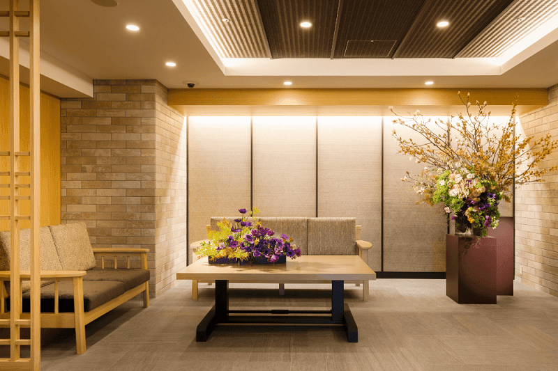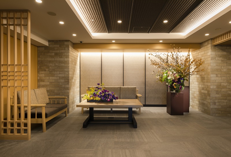 エントランスからエレベーターホールに向かうまでの空間にラウンジスペースを設けました。新聞を読んだり、訪れたご家族とご歓談できる、落ち着いた空間です。一角には熱帯魚の水槽もあり、ゆっくりとお寛ぎいただけます。 ※利用時間:7:00~20:00
