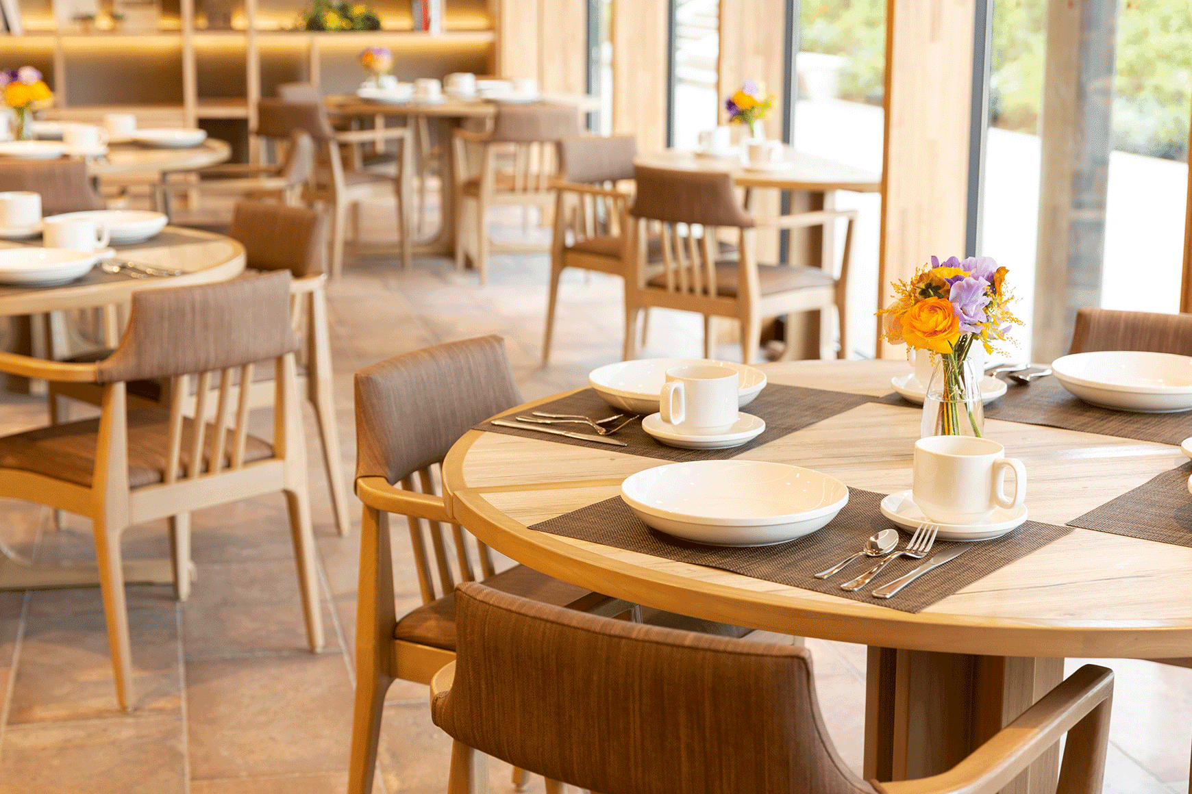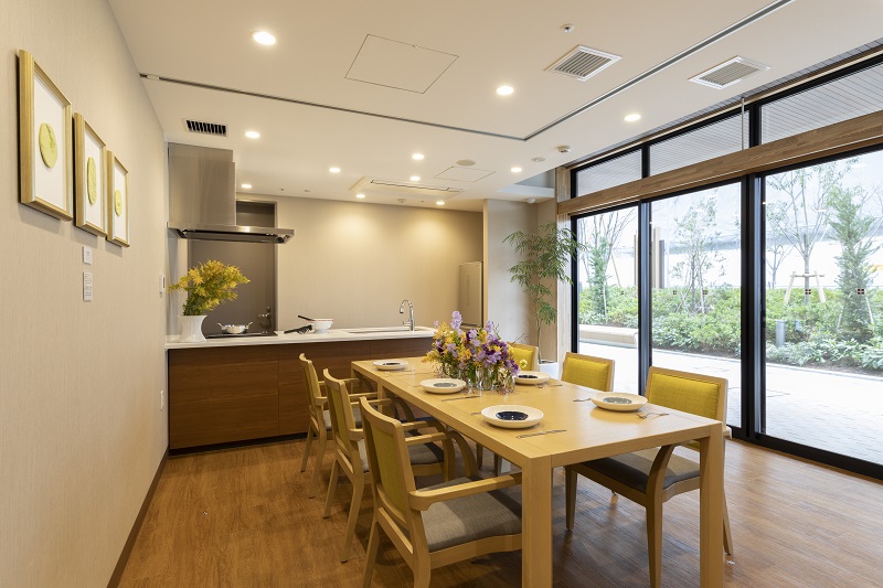 ご入居者のご利用はもちろん、ランチタイムとカフェタイムは、地域にお住まいの方々もご利用いただけるコミュニティカフェです。栄養士が健康に配慮した身体に嬉しいメニューをご提供いたします。外の景色を眺めながら美味しいお食事のひとときをお愉しみいただけます。 ※食事、イベント食、特別食のご利用には別途費用がかかります。