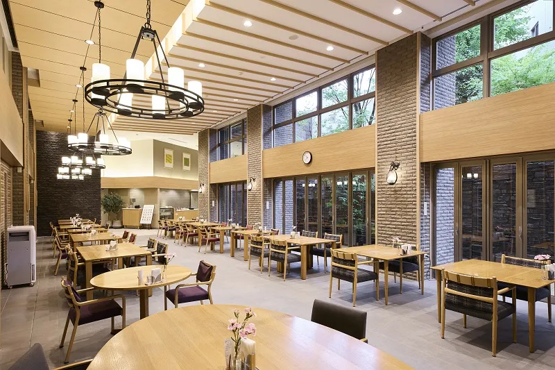 - ダイニングでのお食事で 愉しいひとときを提供いたします。 ------------------------------------------------ ダイニングではお食事を365日・予約なしでご利用いただけます。 季節を感じる変化に富んだ料理をシェフが真心を込めて調理いたします。 プライベートダイニングを併設しており、ご家族・ご友人を招いてお食事することもできます。 お身体の状況に応じて、治療食や刻み食もご用意いたします。 お部屋にいながらお食事を愉しめるルームサービスも行っております。 ※食事、イベント食、特別食、プライベートダイニング、ルームサービスのご利用には別途費用がかかります。