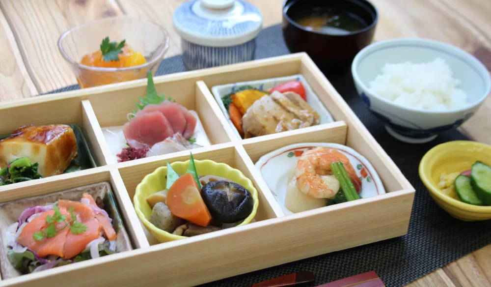 日替わりのお食事(朝・昼・夕)とおやつ(午後)をご提供します。 栄養士や看護師が日常の様子を把握して、お一人おひとりの健康状態に配慮した食形態で対応します。 月1回〜2回、季節や社会の話題などをテーマにしたイベント食をご用意します。 ご家族やご友人を招き、来館・交流の機会になるよう働きかけ、食べる歓びを創出します。