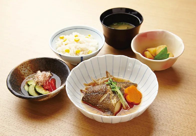 おいしく健康的なお食事を毎日ダイニングでご提供。 銀座スエヒロ協力による味わい豊かなメニューを。 またカロリーや塩分など、お一人おひとりの状態に合わせたお食事をご提供します。