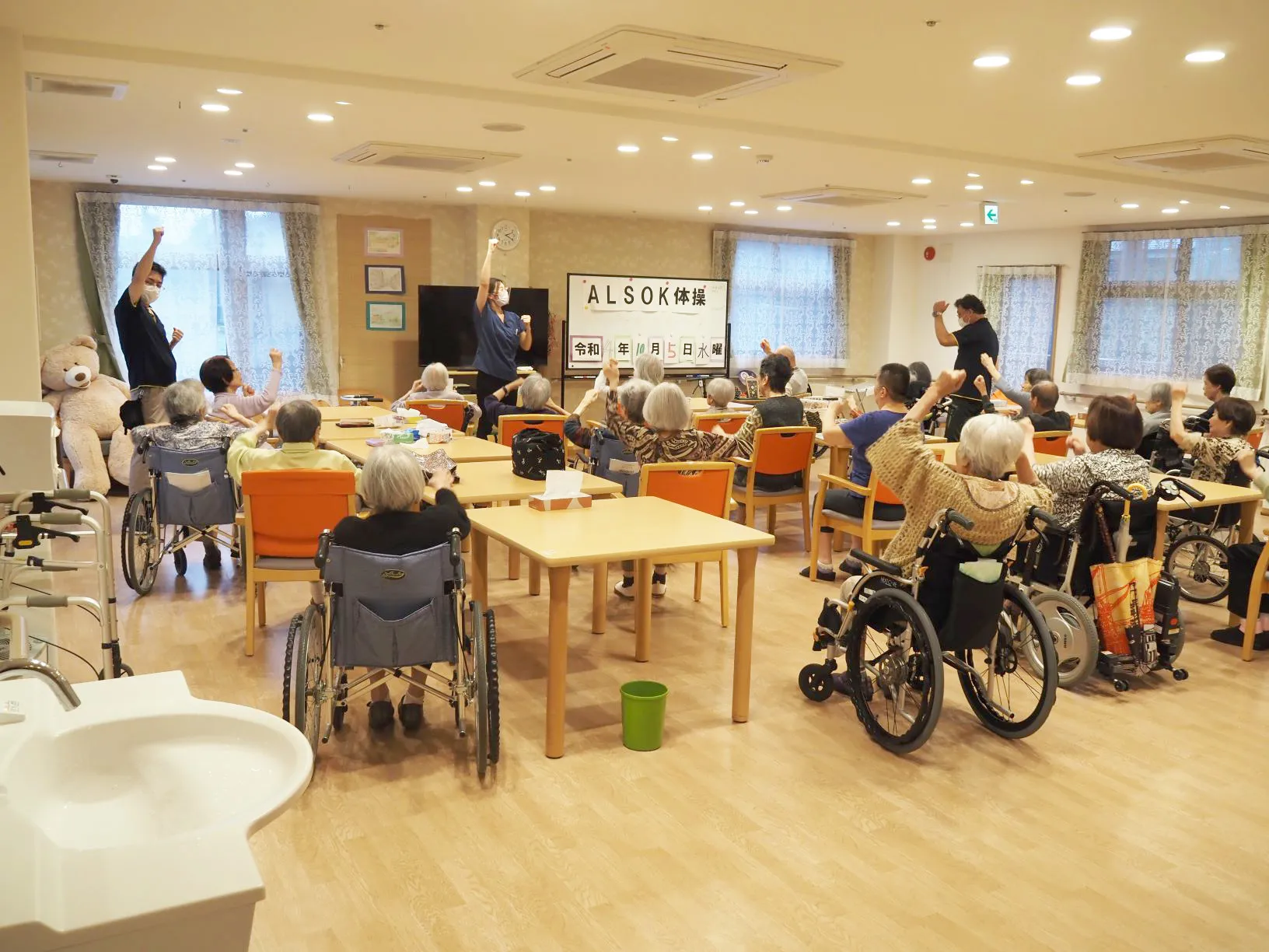 理学療法士による身体機能向上を目的としたリハビリを行っております。 ☆集団体操・・・週に1回、基本は座りながら全身ストレッチ・筋力強化/全身持久力運動を取り入れています ☆個別リハビリ・・・ご入居者様個人のレベルに合わせたリハビリを行っています。 ☆申し送り・・・課題の共有や、状態に変化があった場合の申し送りと介護相談をしております。