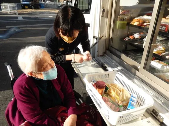 移動スーパー「とくし丸」さまのご協力のもと、毎週土曜日に移動スーパーがやって来ます。皆さまお買い物を楽しまれております♪