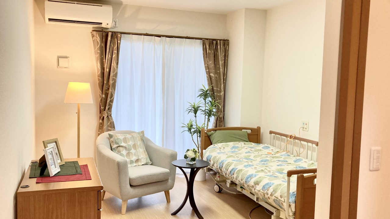 | 居室設備 | ALSOKセキュリティ, 緊急通報装置, テレビ回線, エアコン, クローゼット, 防災設備, 空調換気設備, 照明器具, 電動介護ベッド, カーテン, 寝具, 車椅子対応トイレ(2居室共同設備), 車椅子対応洗面化粧台(2居室共同設備), 洗浄機能付トイレ(車いす対応・緊急コール付), 車椅子対応洗面化粧台, チェスト |