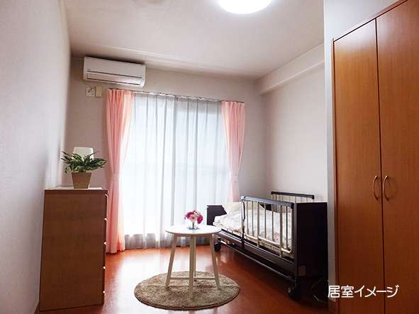 | 居室設備 | ALSOKセキュリティ, 緊急通報装置, テレビ回線, エアコン, クローゼット, 防災設備, 空調換気設備, 照明器具, 電動介護ベッド, カーテン, 寝具, 車椅子対応洗面化粧台 |