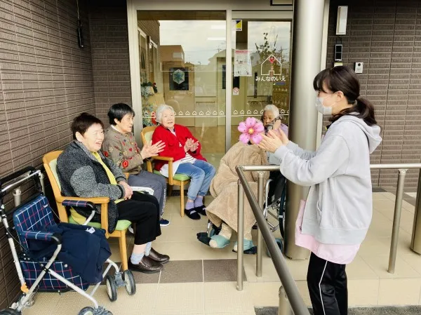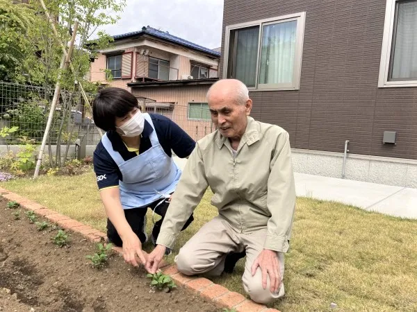 ホームには広い敷地があり、晴れの日は気持ちよい風も通ります。外に出て、きれいな花を眺めたり、菜園に行ったり、歌を歌ったりとのびのびできる点も当ホームの自慢です!