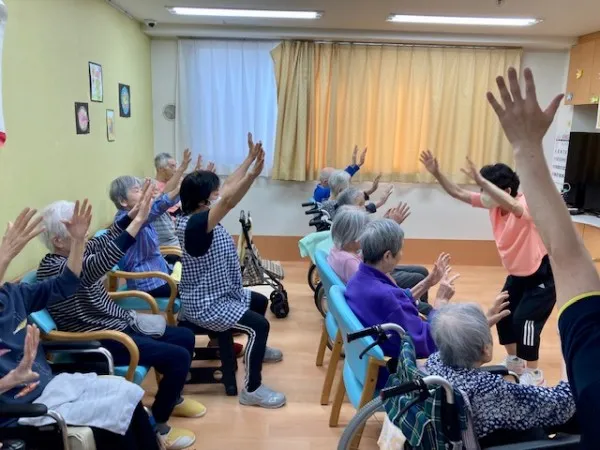 ホームでは生活動作が少ない方が多いため、意識して運動時間を確保する必要があります。食事時間と同レベルで1日のスケジュールに組み込み習慣化しています。専属講師が各ホームを訪問し運動を行うほか、季節に合わせたイベントやリモート運動教室を開催。ご利用者様の健やかな日々をサポートしています。