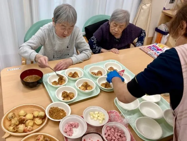 ホームでご提供するお食事は、通常食以外にも季節の食材を使用した特別メニューもご用意しております。毎月のイベントやオケージョンにあわせたメニューはご入居者様にご好評いただいております。「食は元気の源」ですね。