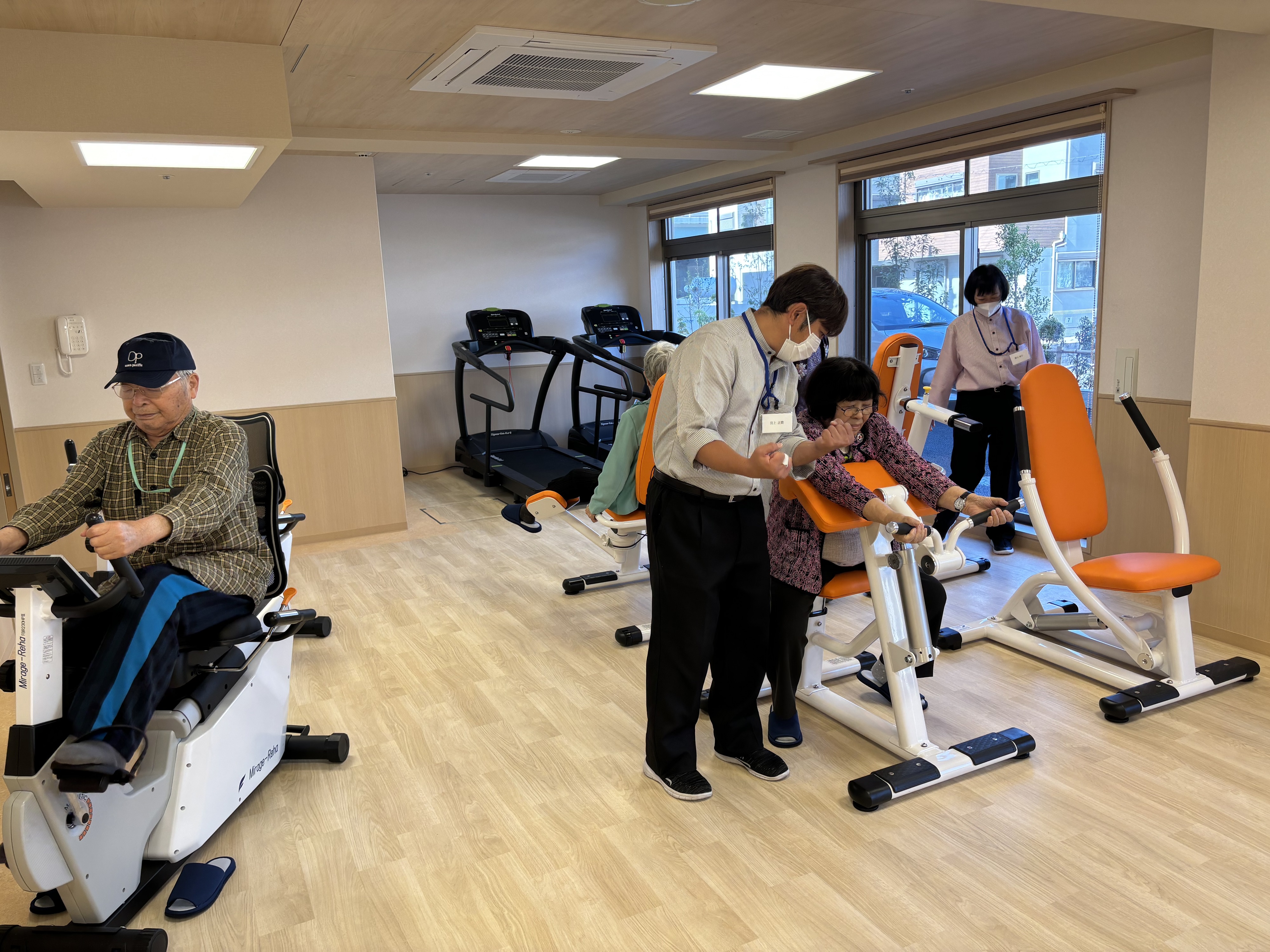 トレーニングルームでは、専門のトレーナーが個別のプログラムをご提案します。体組成計による測定やカウンセリングから運動を継続できるようサポートし、無理なく楽しみながら、身体機能の維持を図れます。 他にも共用設備として共同浴場やカラオケ・映画鑑賞もできる多目的室がございます。