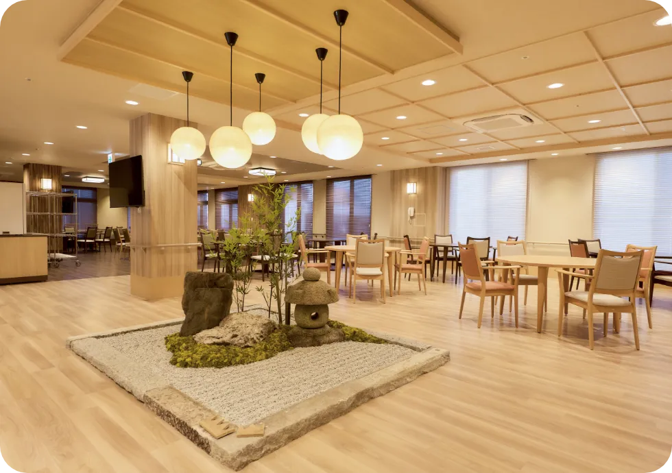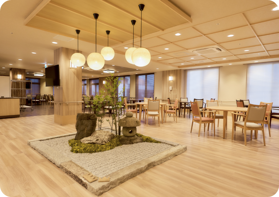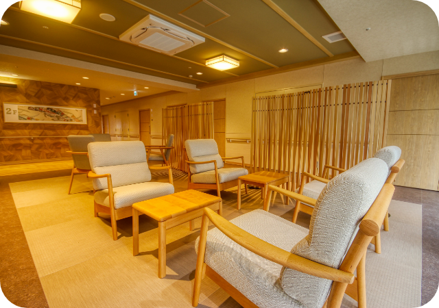 施設内の空間は“和”をコンセプトにしており、明るく温かみのある、心落ち着く空間を演出しています。