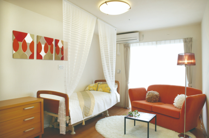 | 居室設備 | エアコン、ベッド、トイレ、洗面台、カーテン、クローゼット、ナースコール、室内照明器具 |