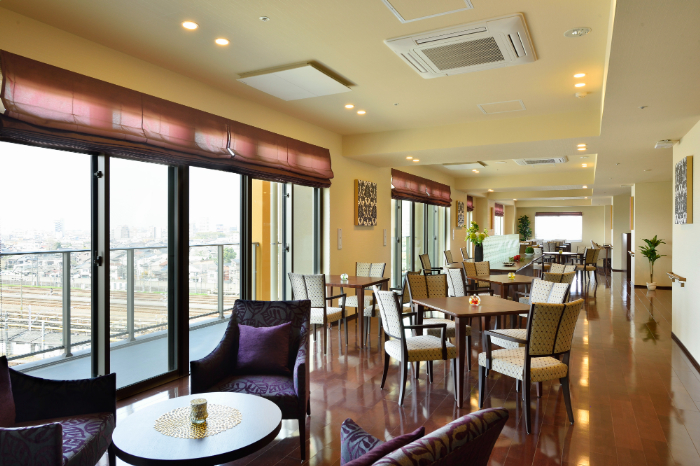 | 居室設備 | トイレ、エアコン、カーテン、カードキー、バルコニー、クローゼット、ナースコール、フローリング、フラットフロア、トランクコーナー、ミニキッチン(一部の居室)、化粧洗面台、収納スペース、収納棚、各種アンテナ(個人契約)、地上波アンテナ、浴室、浴室(一部の居室)、温水洗浄機能付きトイレ、無料WiFi、照明、照明器具、玄関インターホン、車椅子対応トイレ、車椅子対応洗面化粧台、避難設備、防火カーテン、防災設備、電磁調理器(一部の居室)、電話回線(個人契約) |