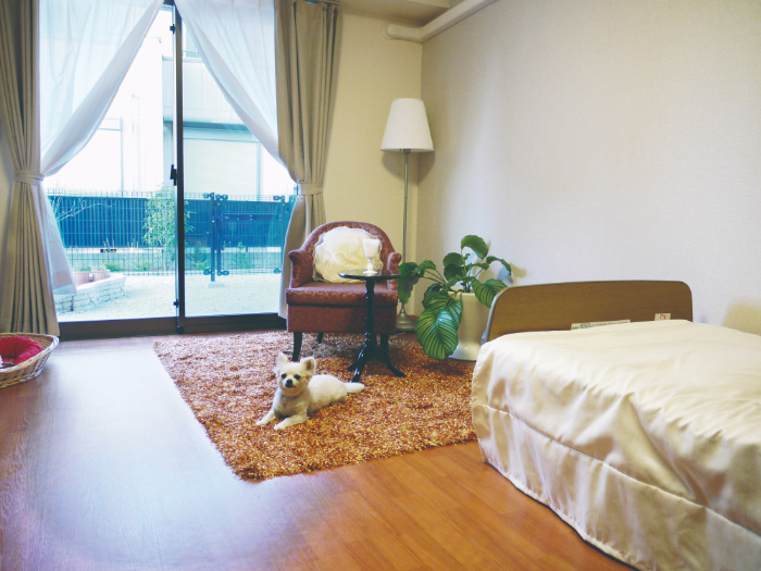 自分のスタイルを大切に、ペットとの生活やご夫婦でのご入居が叶うホームです。約21㎡~45㎡の広々とした居室は、ペット可のお部屋(12室)やお二人部屋(5室)、キッチンやユニットバス付きなど多彩なタイプをご用意。また、外出・外泊・面会は制限なく、ご自身のペースで快適に過ごせます。開放的なロビーや中庭、大浴場も魅力のひとつ。さらに、敷地内のデイサービスや訪問介護事業所など充実したサポート体制が、安心の暮らしを支えます。