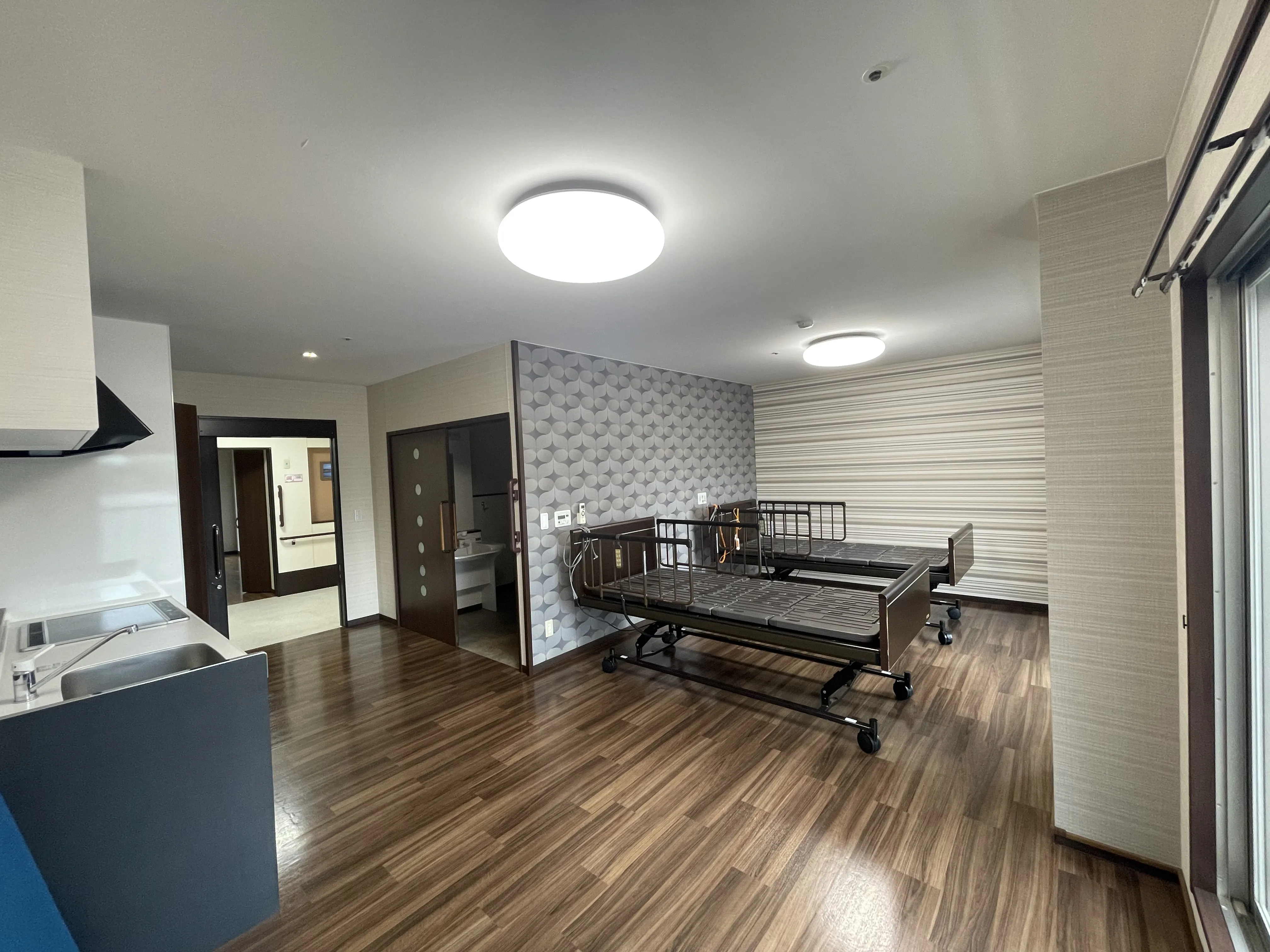 | 居室設備 | トイレ、洗面台、クローゼット、床暖(1Fユニットのみ)、エアコン、空調機、ナースコール、 介護ベット、テレビ端子、カーテン、シャワー室(夫婦部屋のみ) |
