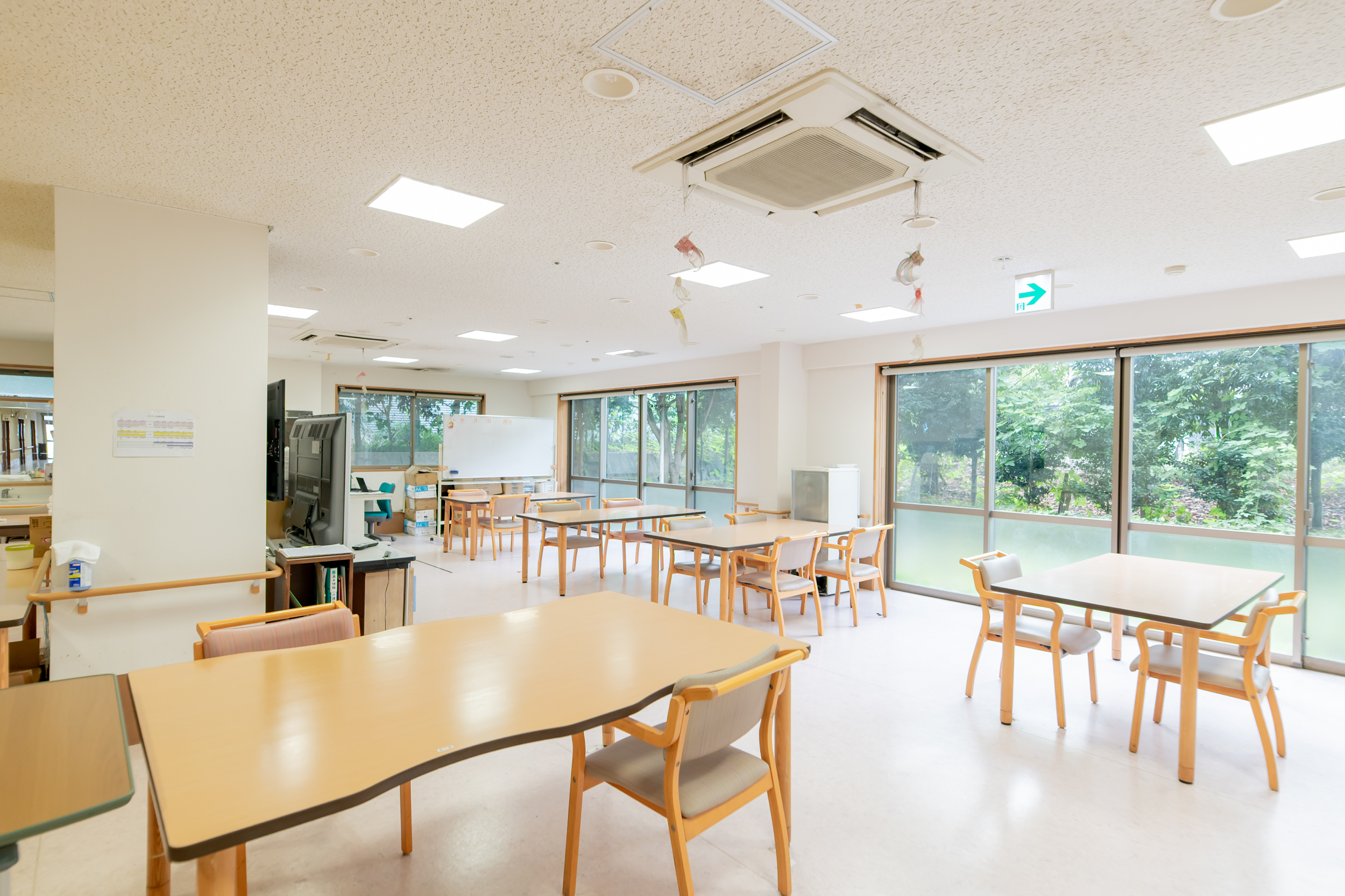 大きな窓からたっぷりと陽光が差し込む広間は、自然のぬくもりを感じる開放的な空間。明るく穏やかな雰囲気の中で、入居者同士が笑顔で語らい、交流を深められます。季節の花々や温かな日差しに包まれながら、心地よい時間を過ごせる、まさに“第二の我が家”のような場所です。