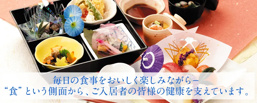 衣・食・住の中でも、食事は、心と身体の健康を支える最も大切な要素です。 『アイムス赤羽』では、お元気な方はもちろん、体調の優れない方にも、毎日の食事をおいしく楽しみながら召し上がっていただけるよう、様々な工夫を凝らしています。 栄養バランスのとれた献立、疾病を考慮したメニュー、食欲がわく明るい雰囲気の食堂など、食事に関わるあらゆる支援を行う『アイムス赤羽』の食事サポート。 “食”という側面から、ご入居者の皆様の健康を支えています。