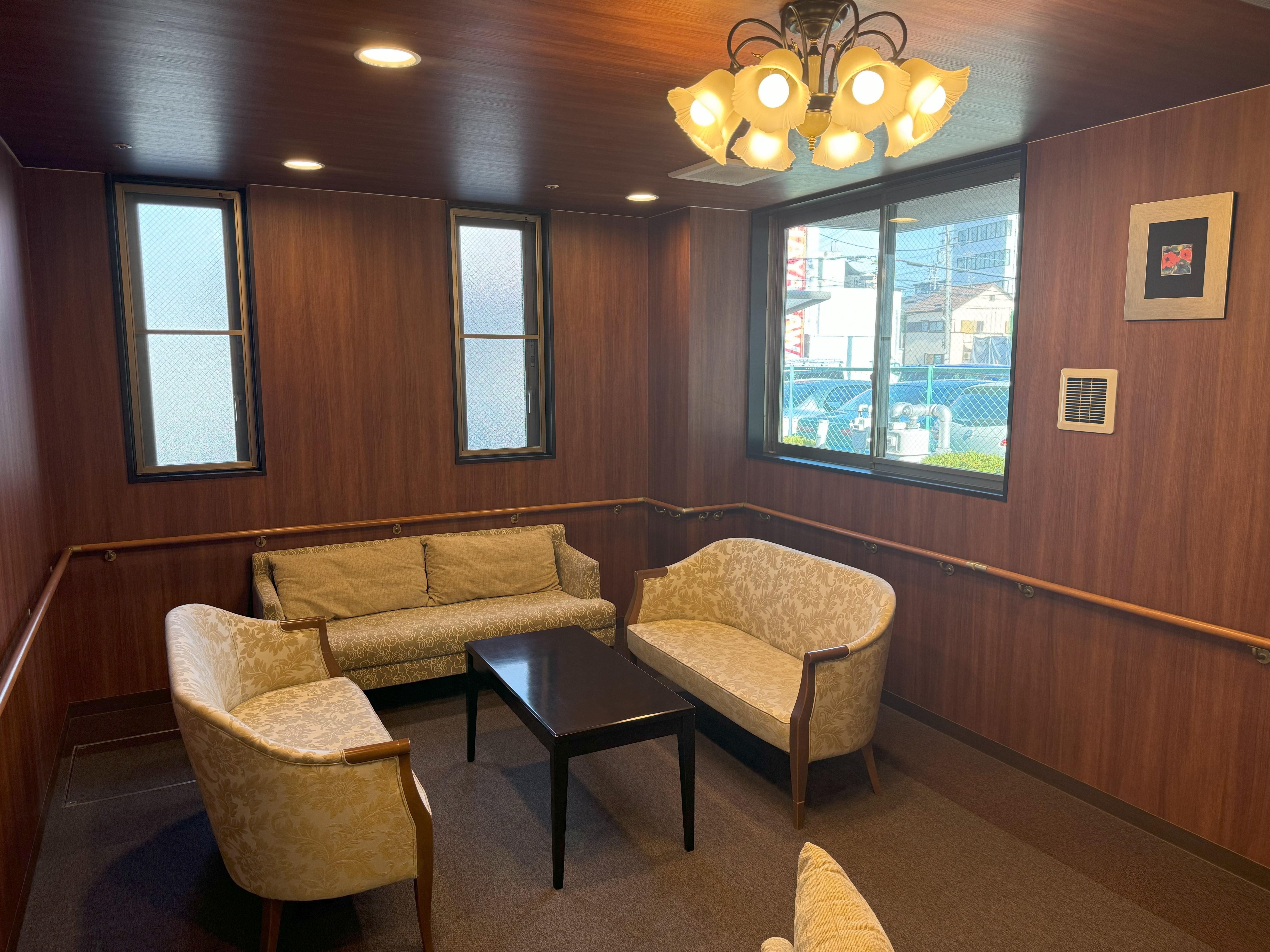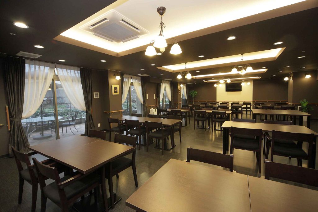 | 共用設備 | ロビー、フロント、エレベーター、ナースコール、カラオケルーム、スタッフルーム、メールボックス、カウンセリングルーム、一般浴室、介護浴室、個人用浴室、健康管理・相談室、共用トイレ、厨房室、各室インターホン設備(ナースコールとは別)、多目的室、リネン室、寝台用エレベーター、座位型シャワー、放送設備、更衣室、機械浴室、汚物処理室、洗濯室、洗面室、玄関ホール、異常監視システム、バイク置き場、自販機、花壇、談話室、足浴、車椅子用トイレ、避難設備、防災設備、食品庫、ダイニングルーム(食堂)、駐車場、駐輪場 |