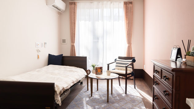 | 居室設備 | 介護ベッド・エアコン・クローゼット・カーテン・照明器具・トイレ・洗面台・緊急コール等 |