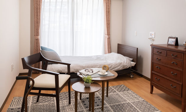 | 居室設備 | 介護ベッド・エアコン・クローゼット・カーテン・照明器具・トイレ・洗面台・緊急コール等 |