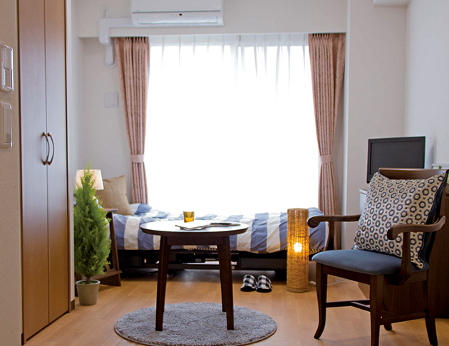 | 居室設備 | 介護ベッド・エアコン・クローゼット・照明器具・カーテン・トイレ・洗面台・緊急コール等 |