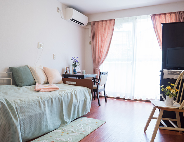 | 居室設備 | 介護ベッド・エアコン・カーテン・照明器具・トイレ・洗面台・緊急コール等 |